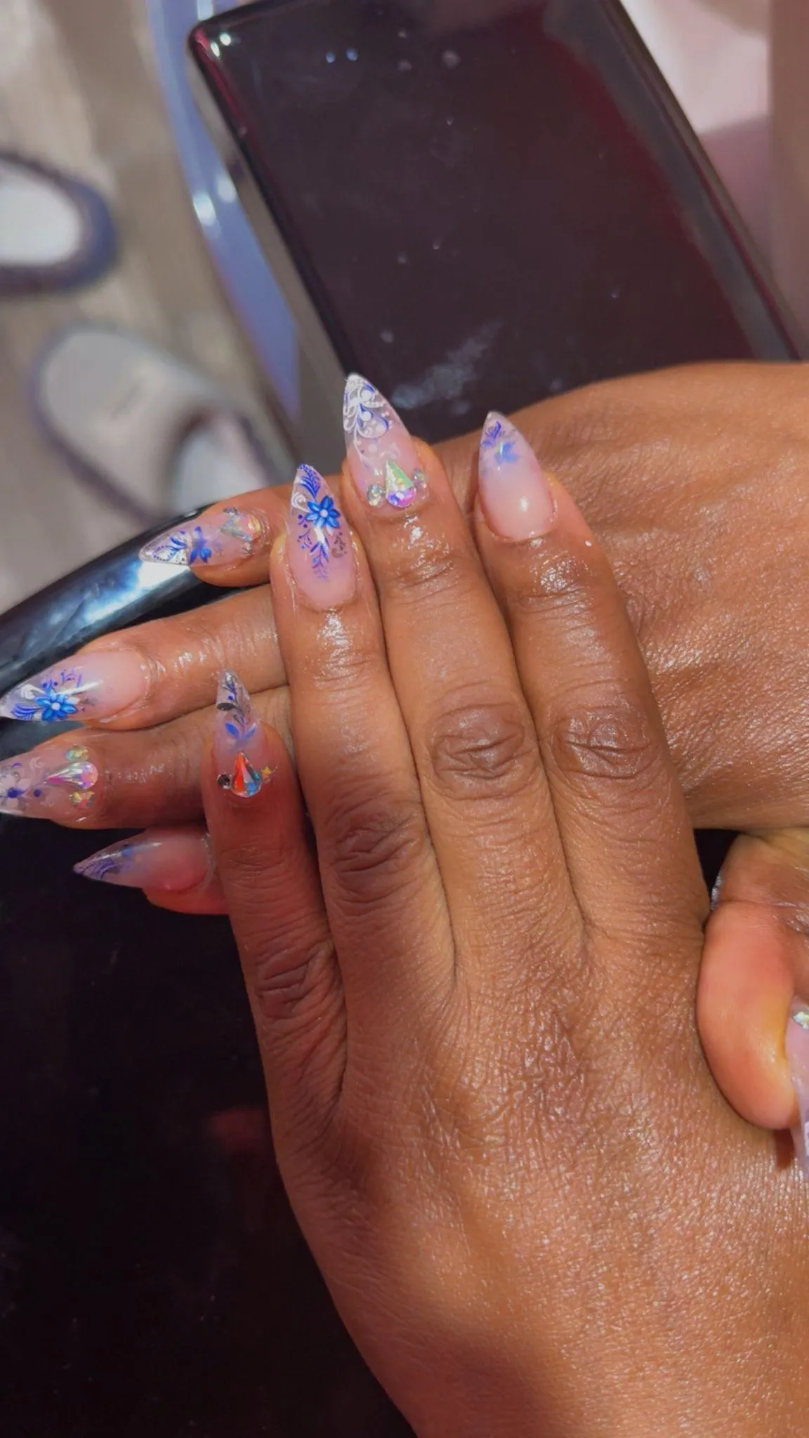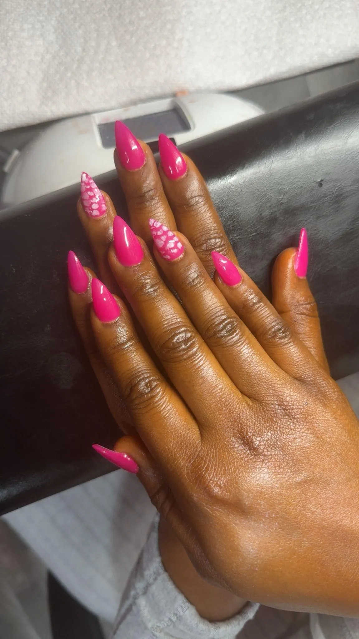 We offer a variety of nail shapes and lengths, including square, coffin, almond, stiletto, and more customized to your preference.